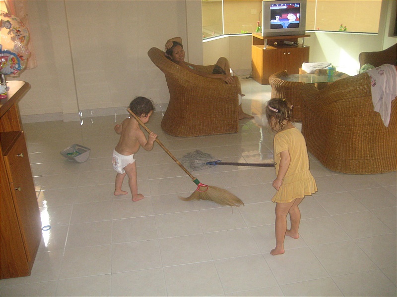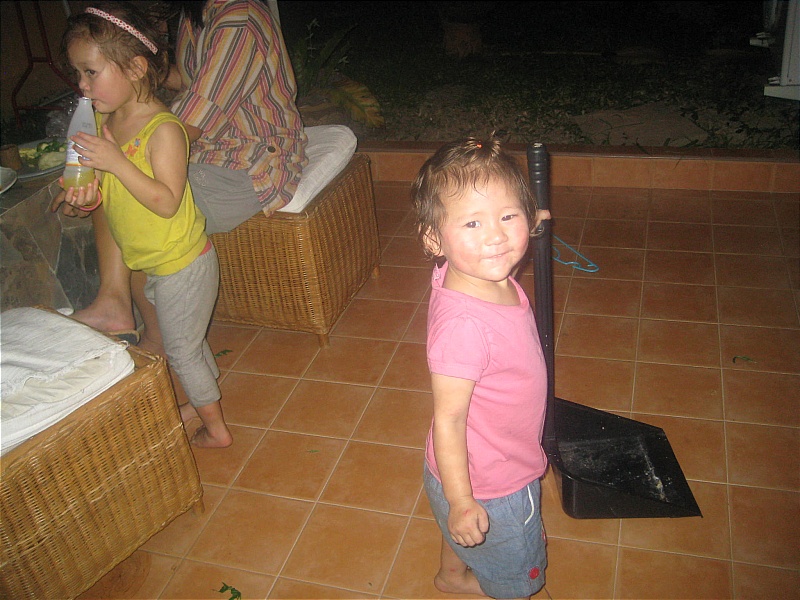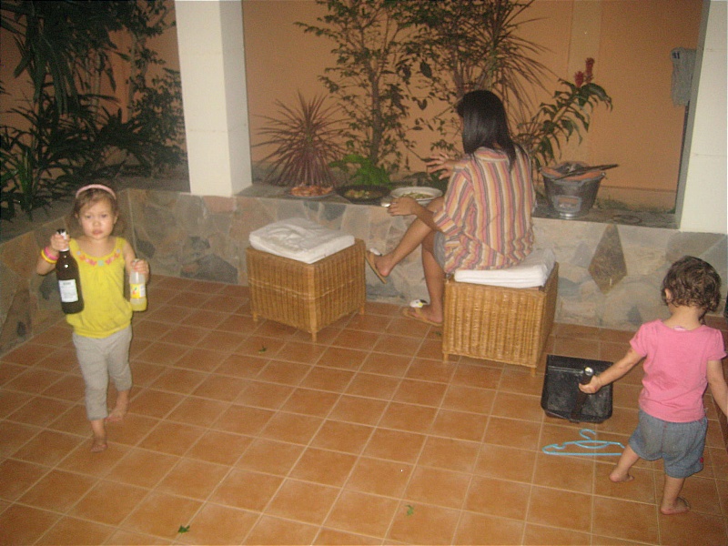 Handing the cameraman the first drink of the day and Sasha on cleaning duties
